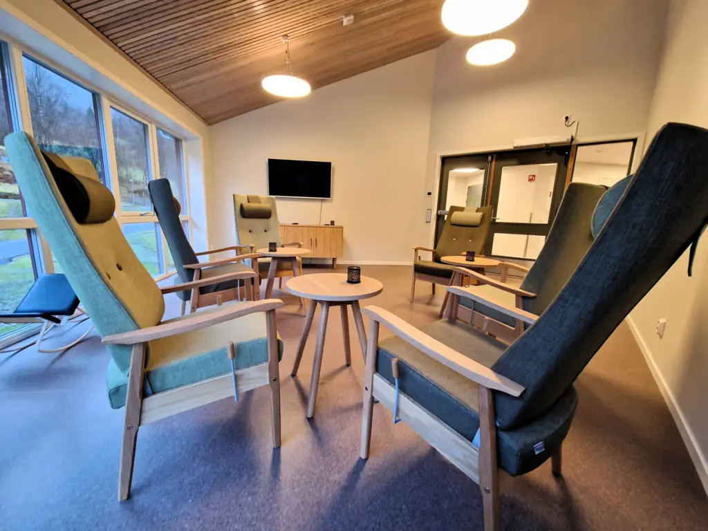 - Fløyen har eit opphaldsrom med gode stolar og TV.